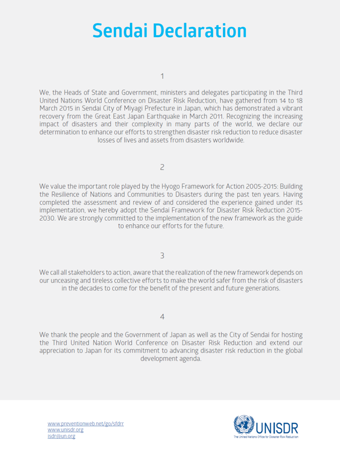 43300_sendaideclaration.pdf (preventionweb.net)<https://www.preventionweb.net/files/43300_sendaideclaration.pdf?_gl=1*4vnx3d*_ga*MTIwNTYxNzg0LjE2OTUyNTkwNDU.*_ga_D8G5WXP6YM*MTY5NTI1OTA1NS4xLjAuMTY5NTI1OTA1NS4wLjAuMA..>