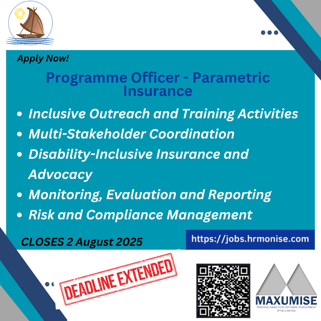 1. We are recruiting for the role of Programme Officer – Parametric Insurance.