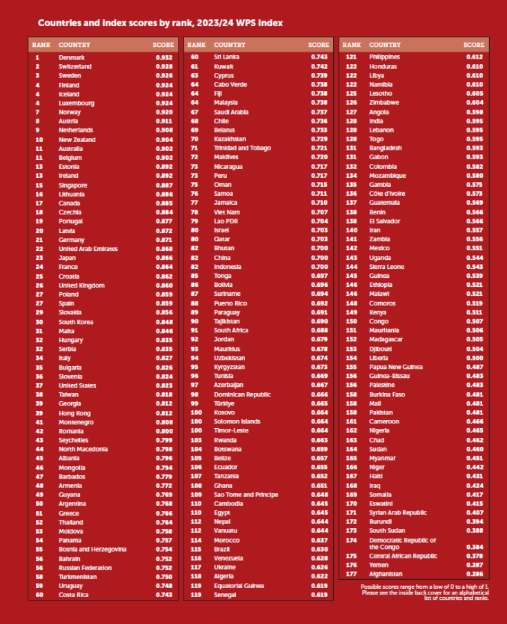 Women, Peace & Security Index 2023/24 - Country Rankings +