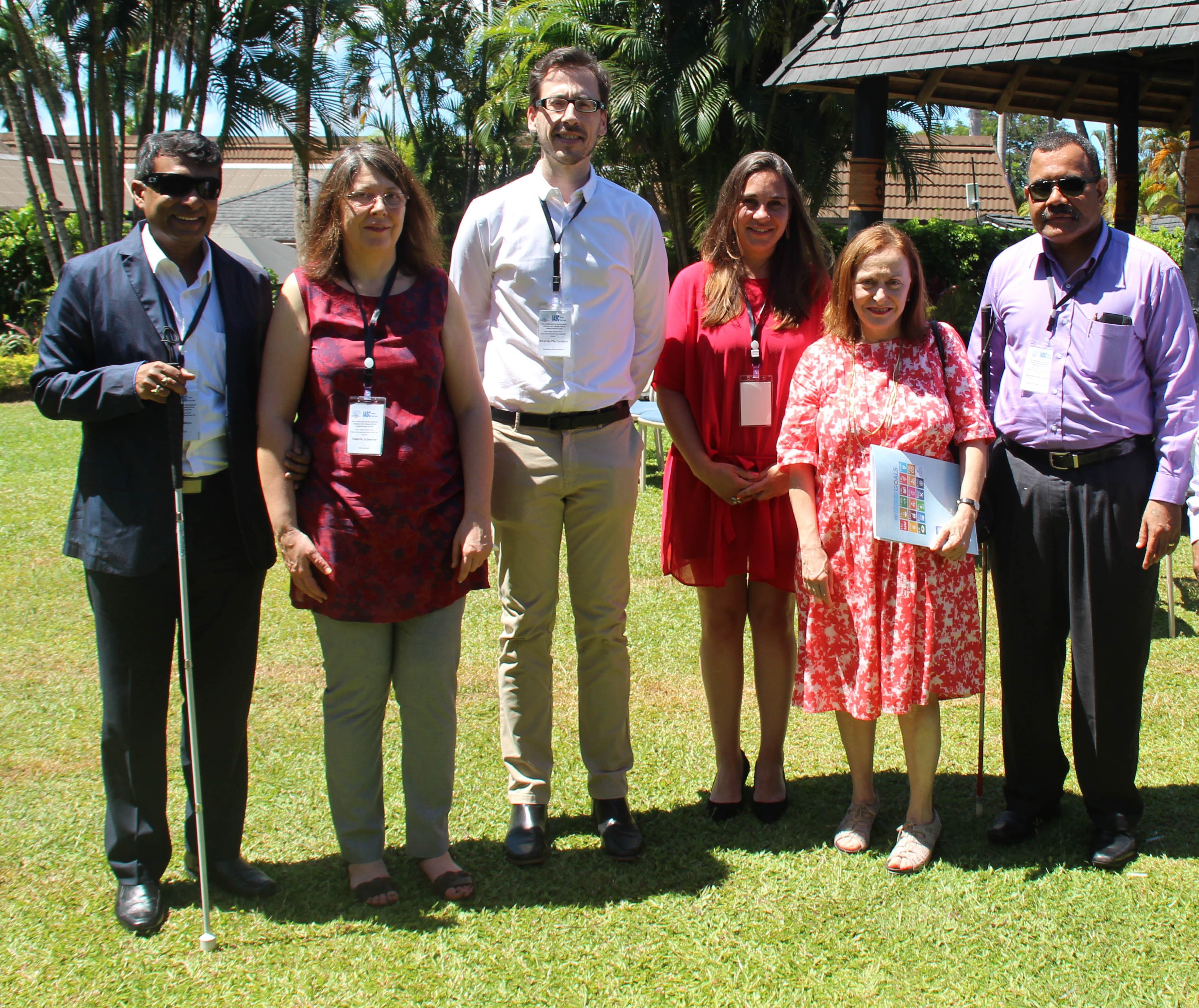 Picture 2 (IASC Consultant 201818): (L-R) - Gopal Mitra (IASC Committee Co-Chair (UNICEF), Velarie Scherrer (IASC Consultant), Ricardo PLA Cordero (IASC Committee Co-Chair (Humanity Inclusion), Georgia Dominik (IASC Committee Co-Chair (International Disability Alliance), Osnat Lubrani (UN Resident Coordinator and UNDP Resident Representative), Setareki Macanawai (CEO, Pacific Disability Forum)