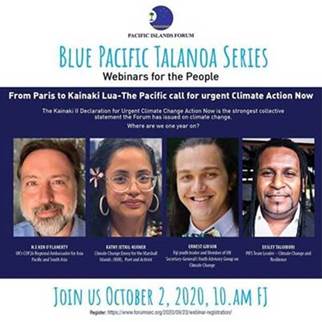 Sharing the advise below on PIFS inaugural webinar series starting off with the commemoration of the first anniversary of the Kainiaki Lua Declaration the strongest collective statement on climate change issued by Pacific Islands Forum Leaders in more than two decades of raising Pacific voices on climate change.