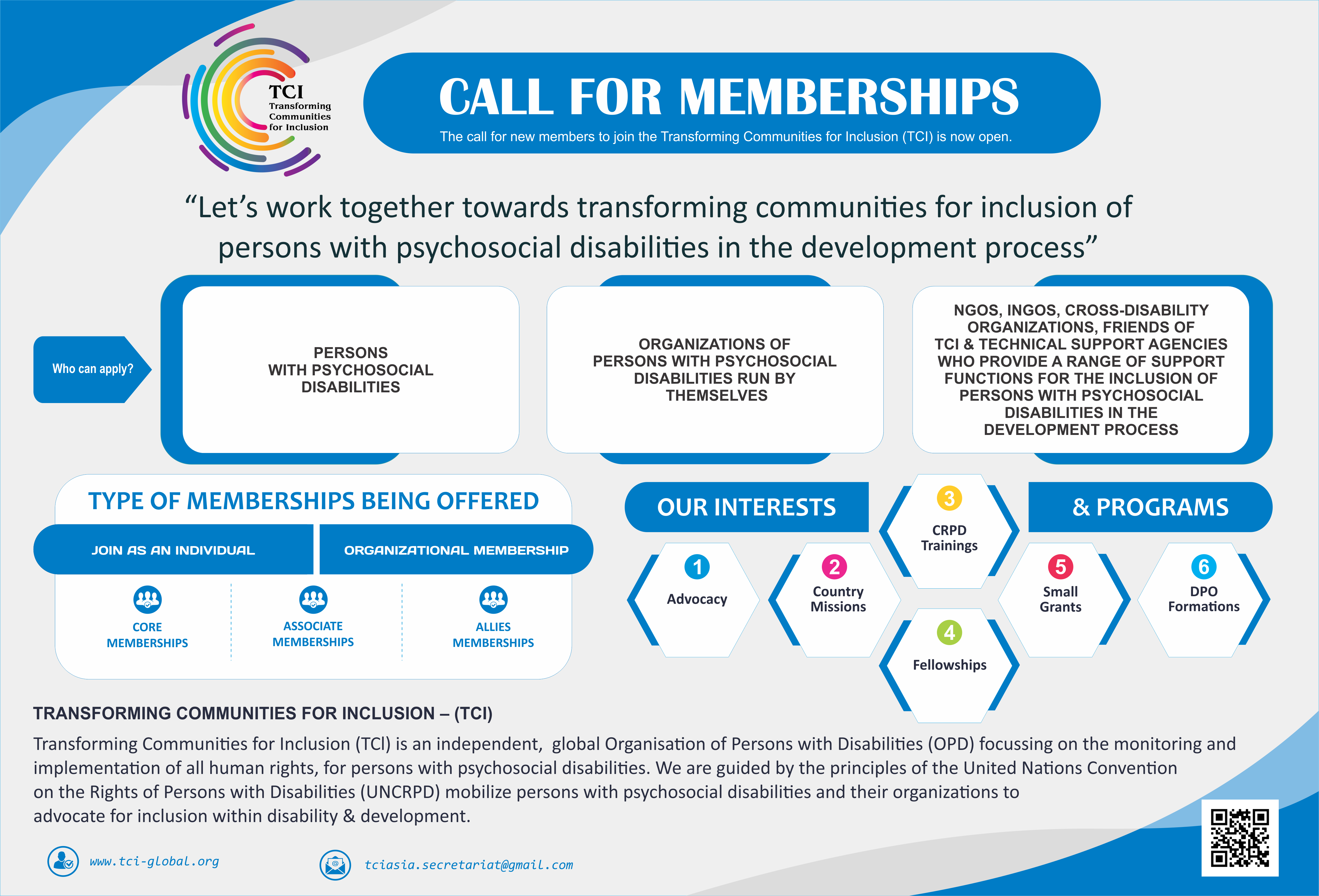 [PDFlist] CALL FOR MEMBERSHIPS- TRANSFORMING COMMUNITIES FOR INCLUSION (TCI)