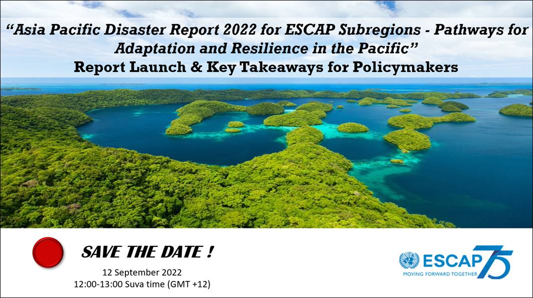 [PDFlist] SAVE THE DATE: Launch of "Asia Pacific Disaster Report 2022 for ESCAP Subregions - Pathways for Adaptation and Resilience in the Pacific"