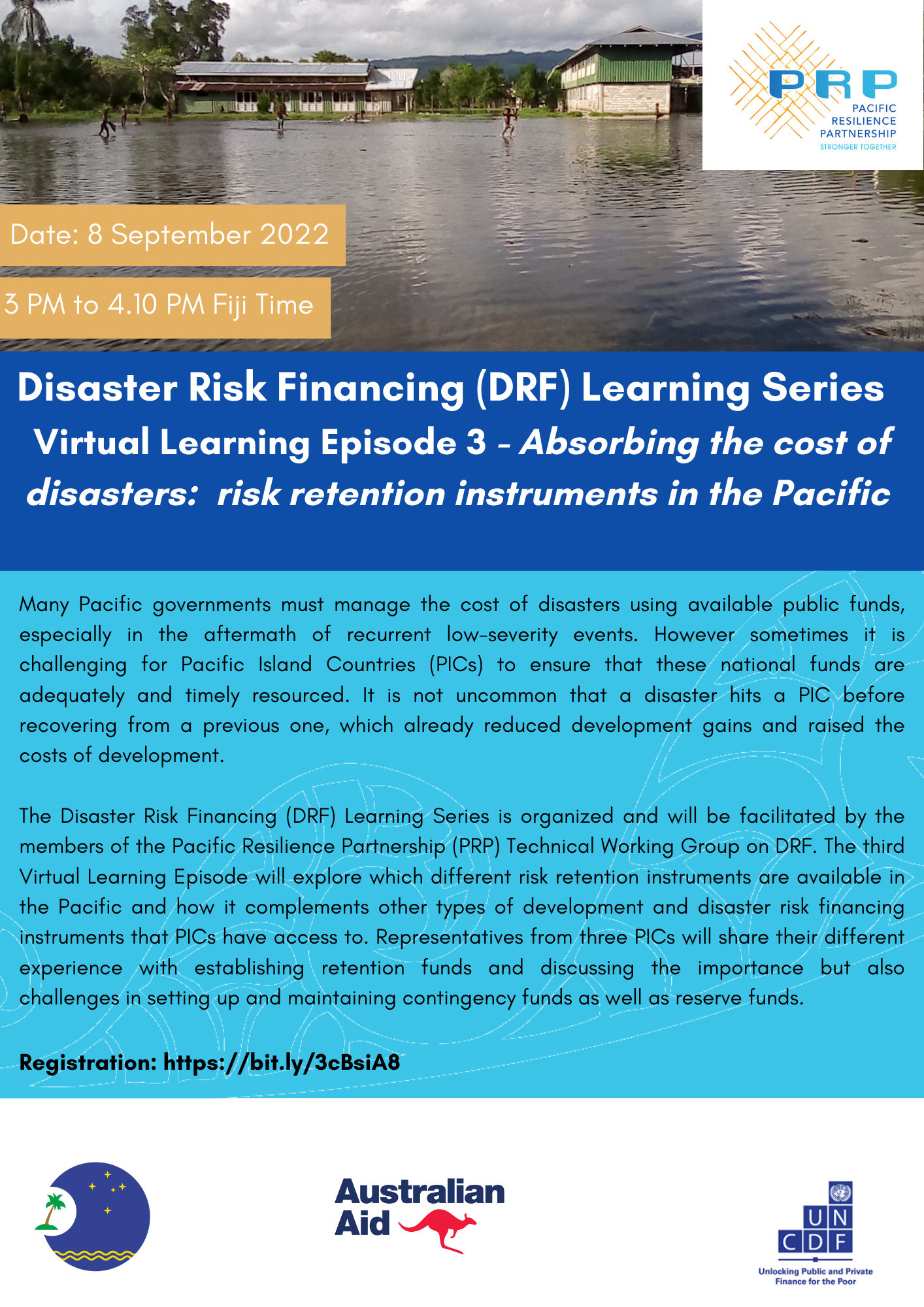Hope you are doing well. Please find attached a flyer on the Disaster Risk Financing Learning Series. Lots of good discussion to learn from.