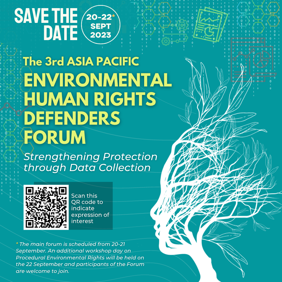 [PDFlist] Save the date: 3rd Asia-Pacific Environmental Human Rights Defenders Forum [20-21 September 2023]