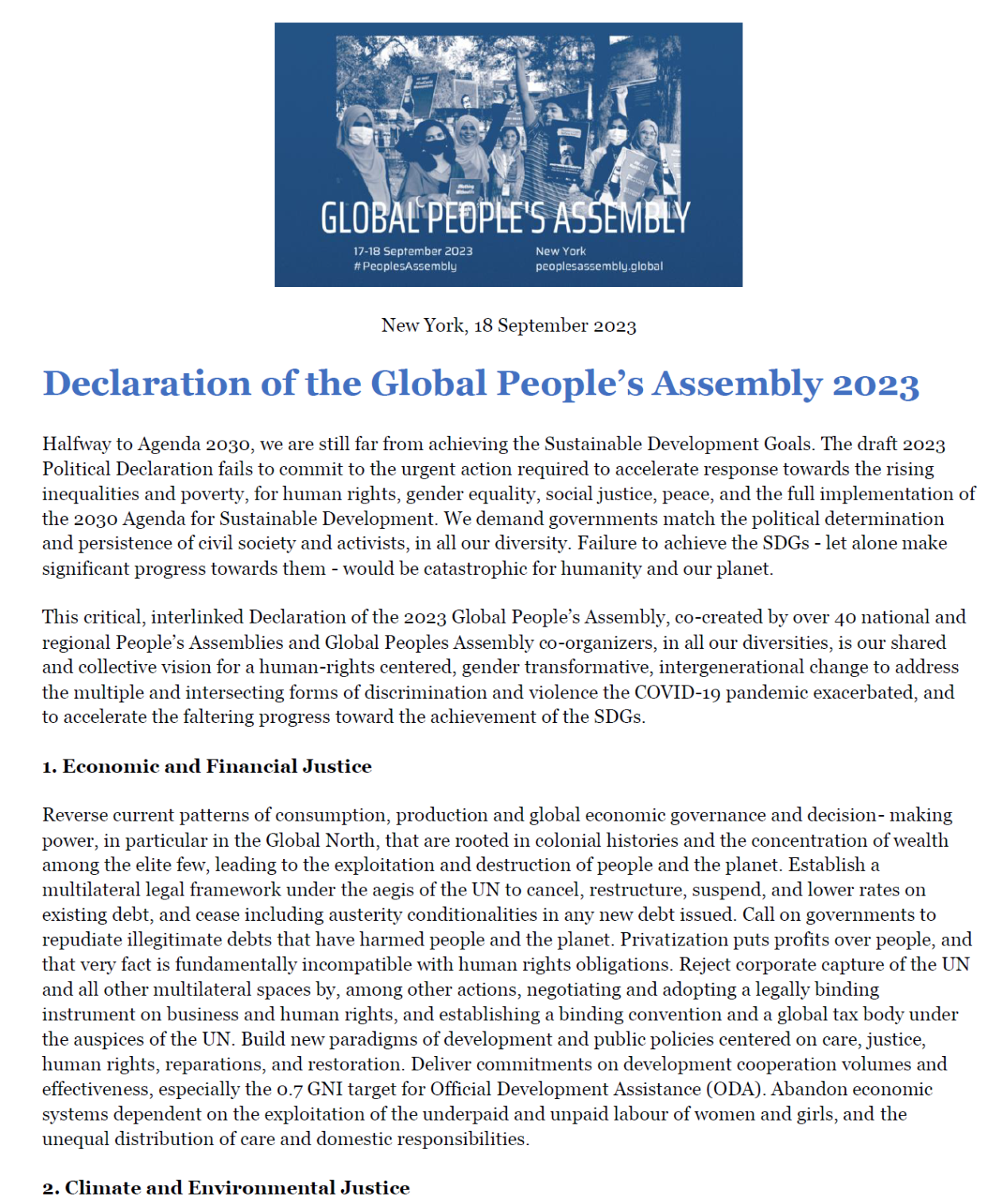 [PDFlist] Global People's Assembly 2023 - DECLARATION