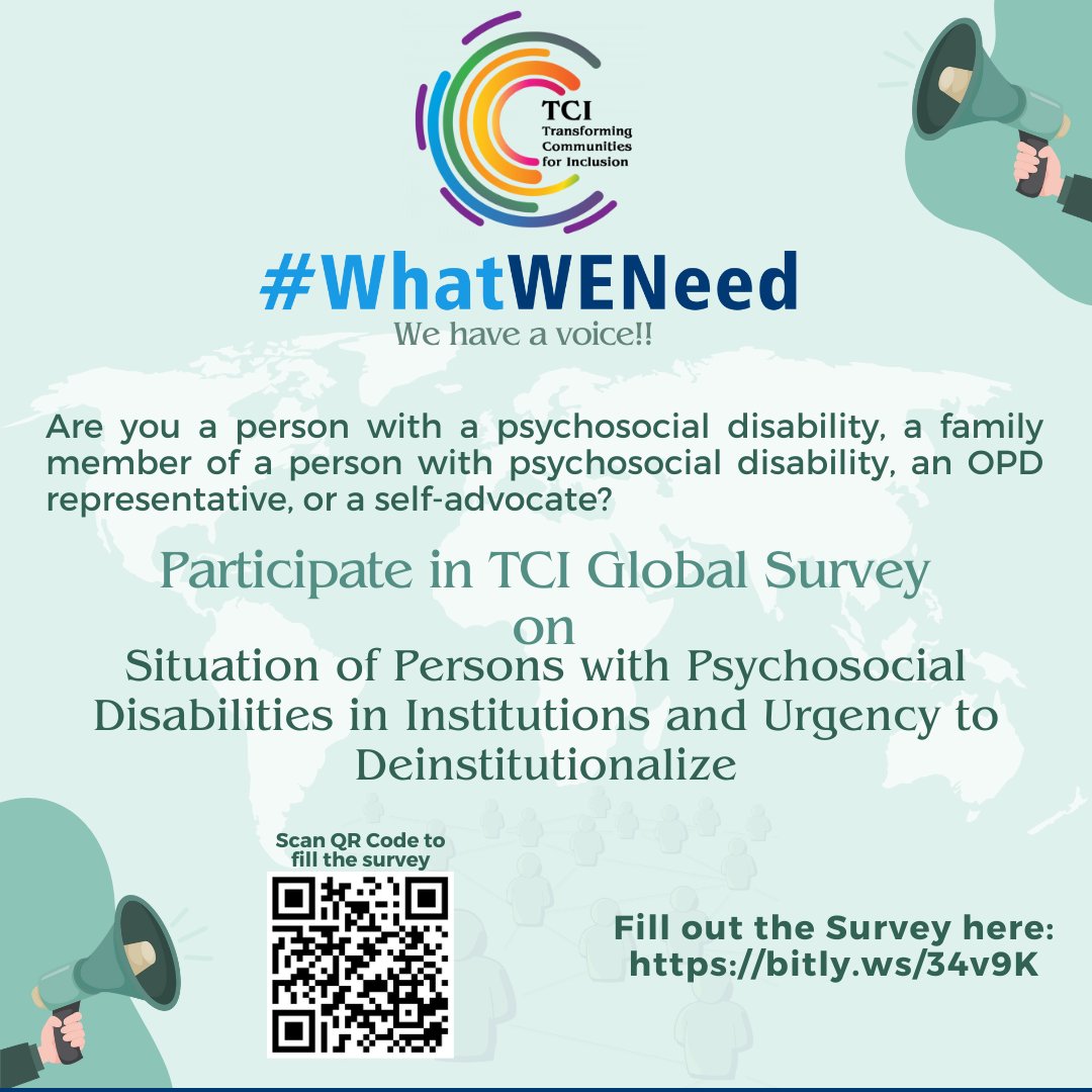 In this context, we are pleased to share a survey questionnaire with our members and networks on "Situation of Persons with Psychosocial Disabilities in Institutions and Urgency to Deinstitutionalize". The objective of this survey is to develop a global report on the situation of persons with psychosocial disabilities in institutions and the immediate need for de-institutionalization.